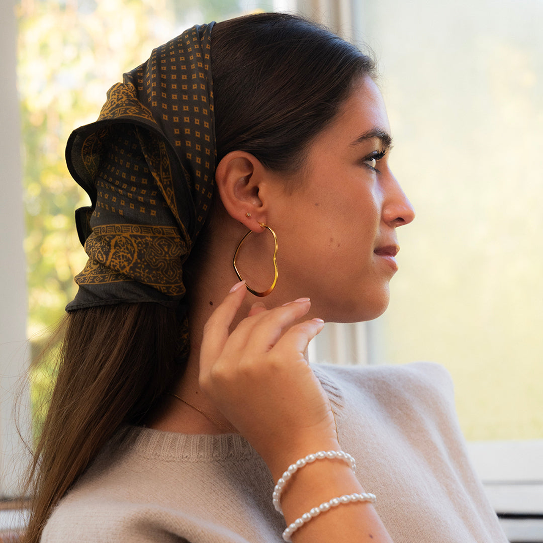 Gold coloured hoop earrings with heart shape