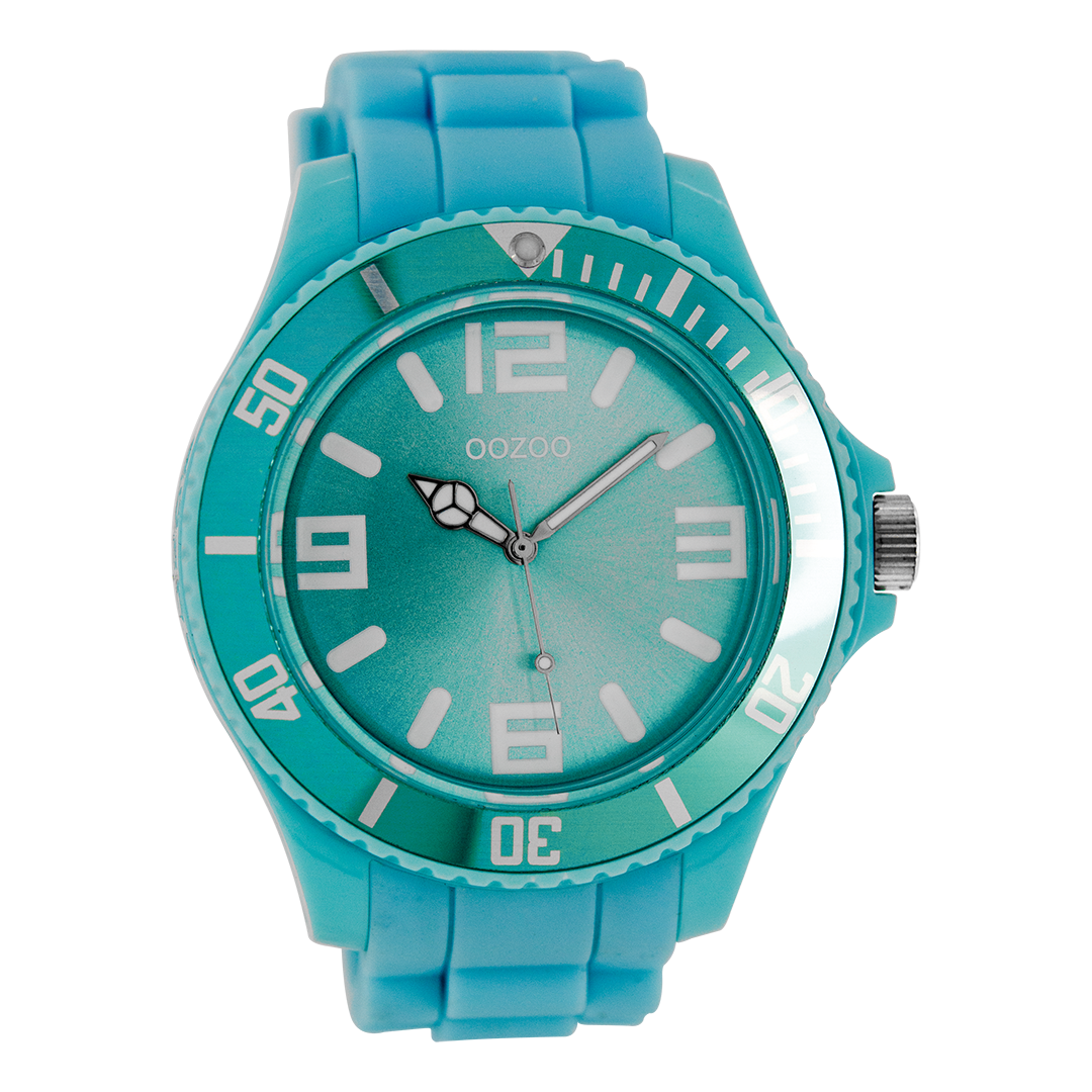 Stand out with this beautiful round unisex design from the trendy OOZOO Timepieces collection. The C4165 has a light blue rubber strap and 48 mm light blue plastic watch case. You are making quite the fashion statement with this light blue sunray dial, white stripes and numbers digits and silver coloured/white hands. This essential watch for your wardrobe has a mineral glass, stainless steel backplate and is nickel safe. This watch has a 2 Japanese movement and is covered by a 2 year warranty (see section 3 of our Refund, shipping & warranty policy).