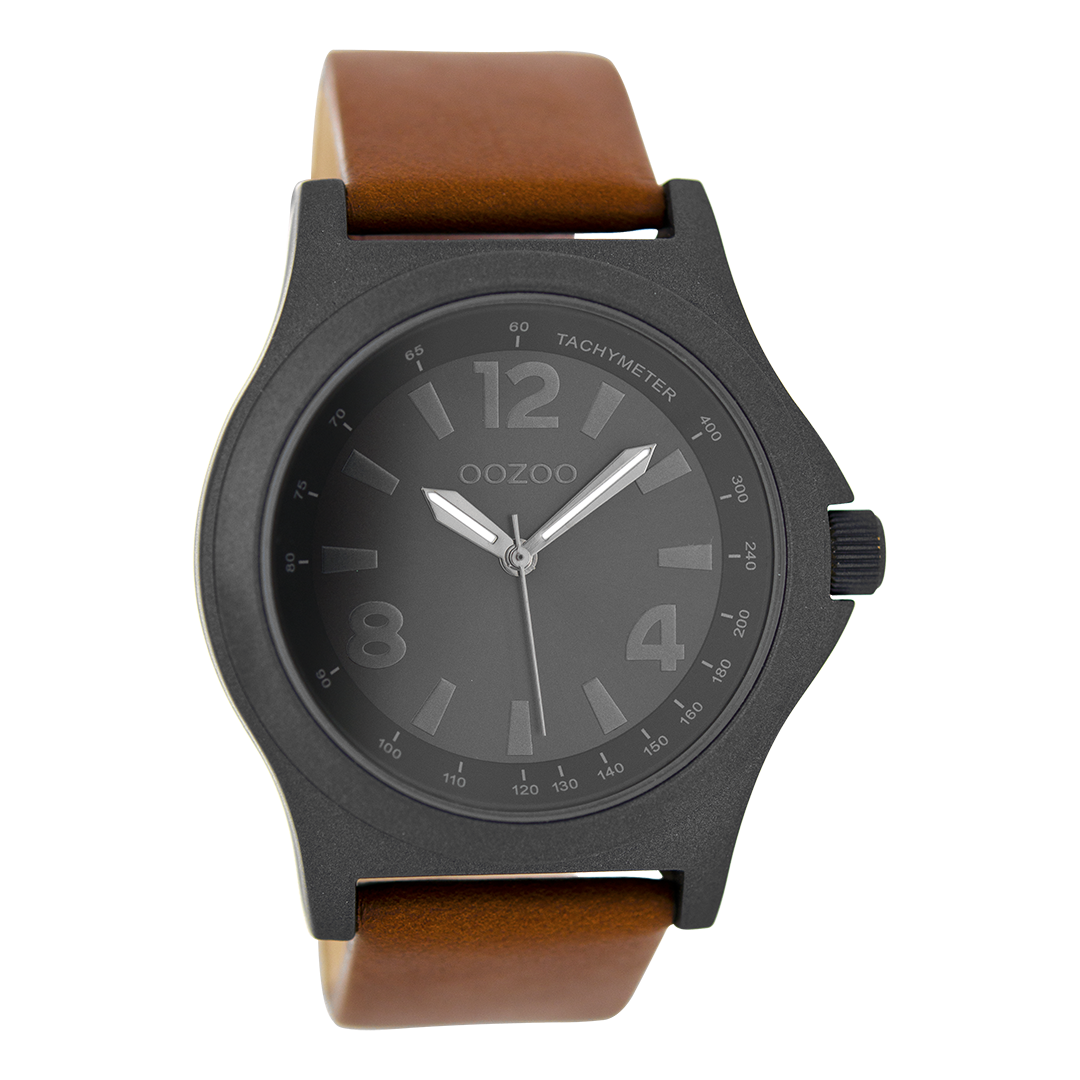 Black OOZOO watch with brown leather strap - C6879